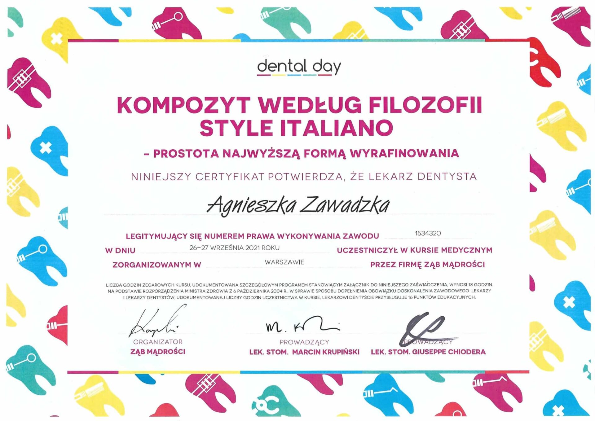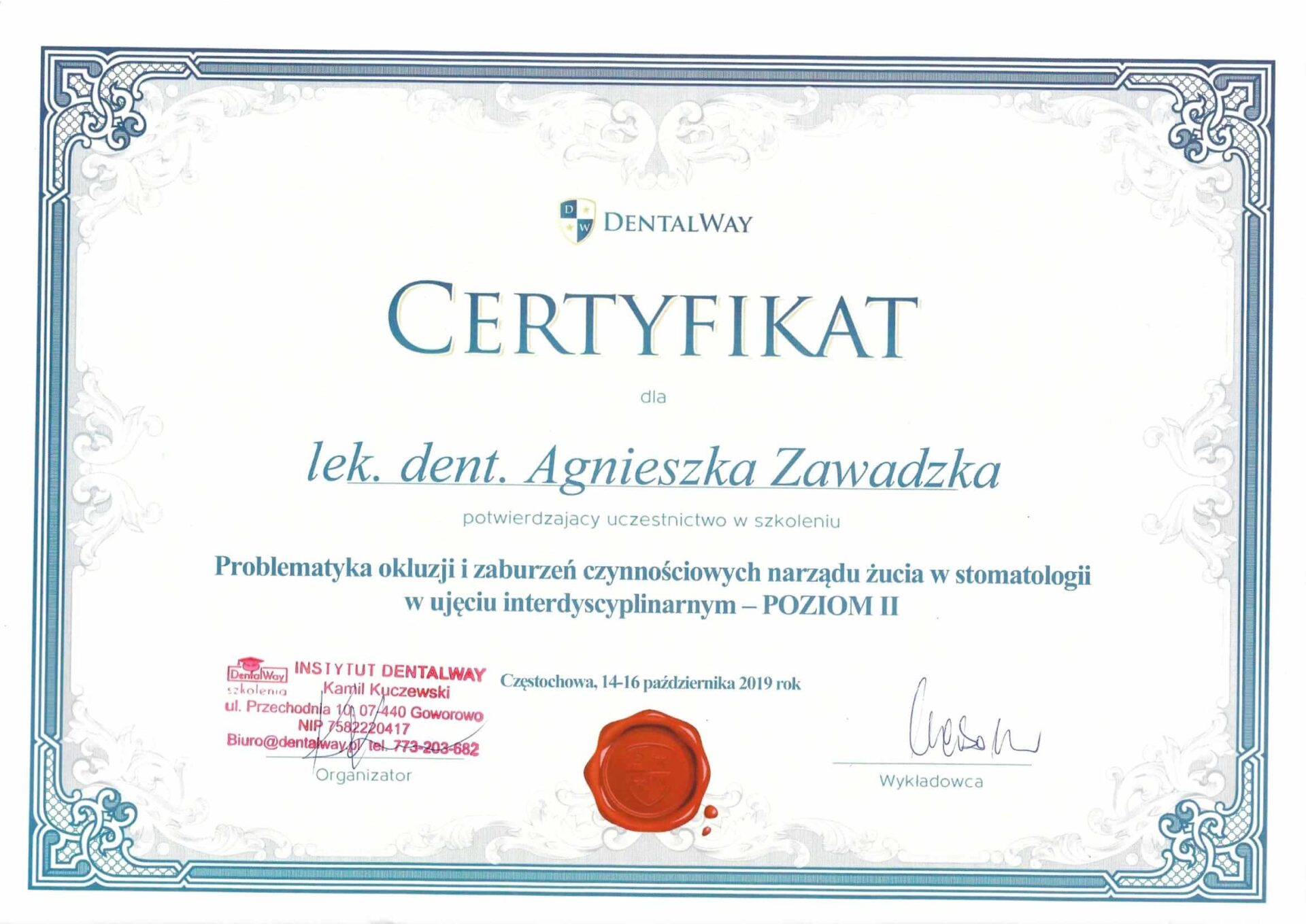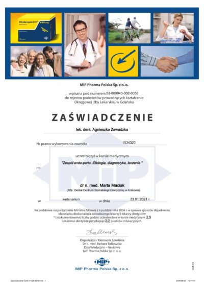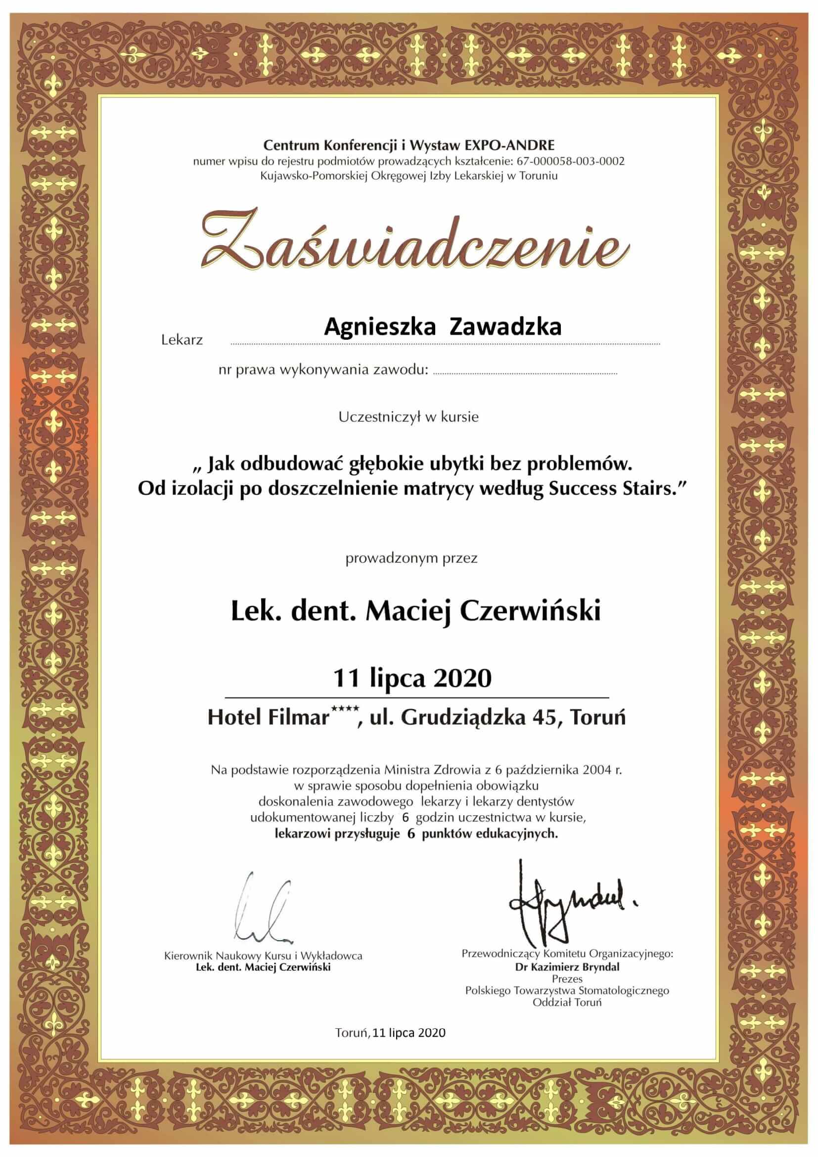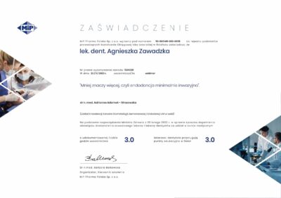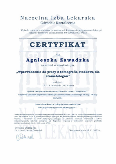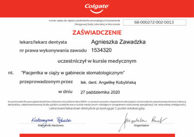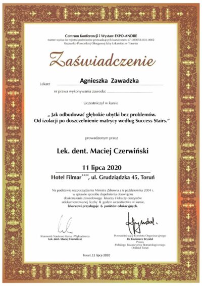 Doktor Agnieszka stawia na przejrzystą komunikację ze swoimi pacjentami, cechuje się empatią i niezwykłą delikatnością. Procedury przeprowadza zawsze bezboleśnie i z dbałością o najwyższy komfort pacjentów. Podnosi swoje kompetencje poprzez udział w szkoleniach i dba by wykonywane procedury były aktualne i indywidualnie dobrane do potrzeb pacjentów. Jeśli potrzebujesz lekarza, który otoczy Cię opieką i przeprowadzi przez wyzwania leczenia zębów to doktor Agnieszka jest właściwym wyborem.